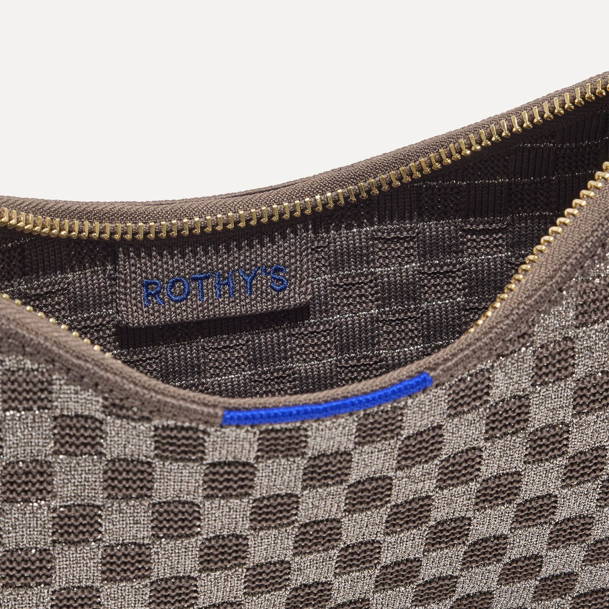 - Sleek design in a shimmery metallic taupe basketweave pattern.