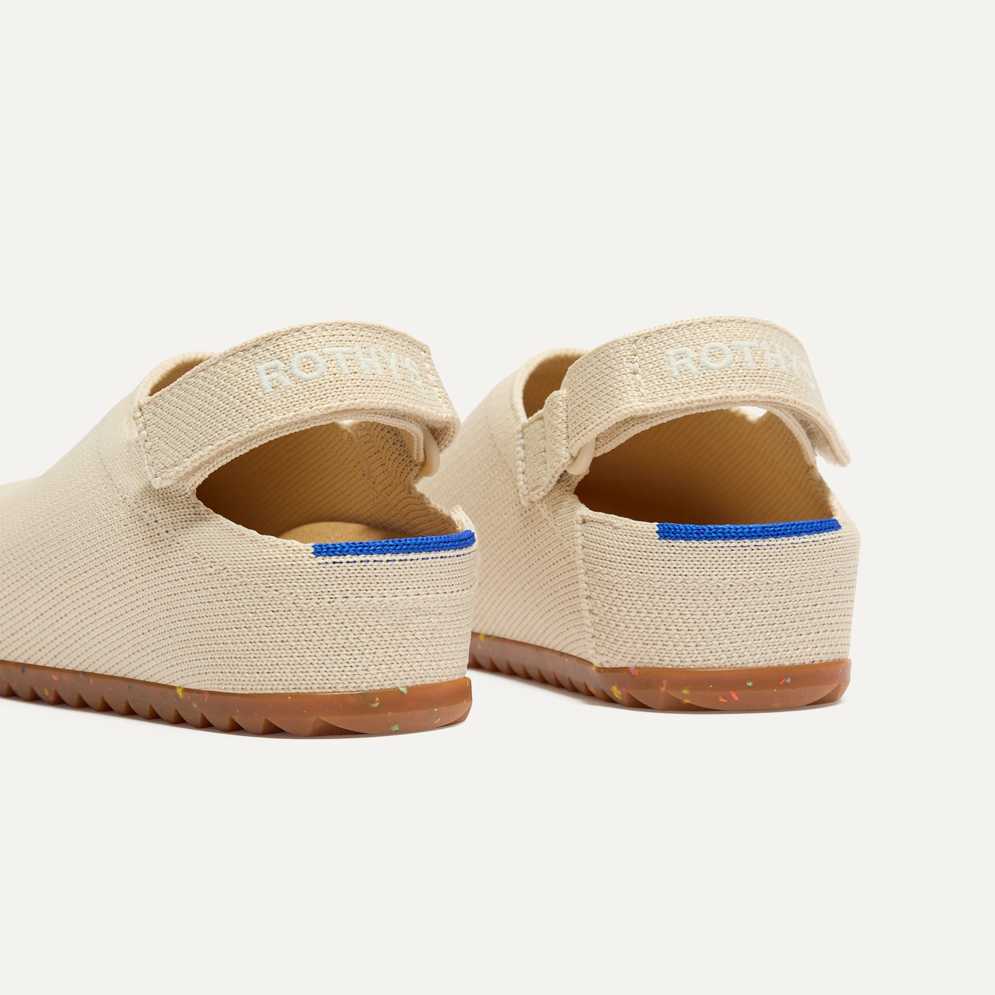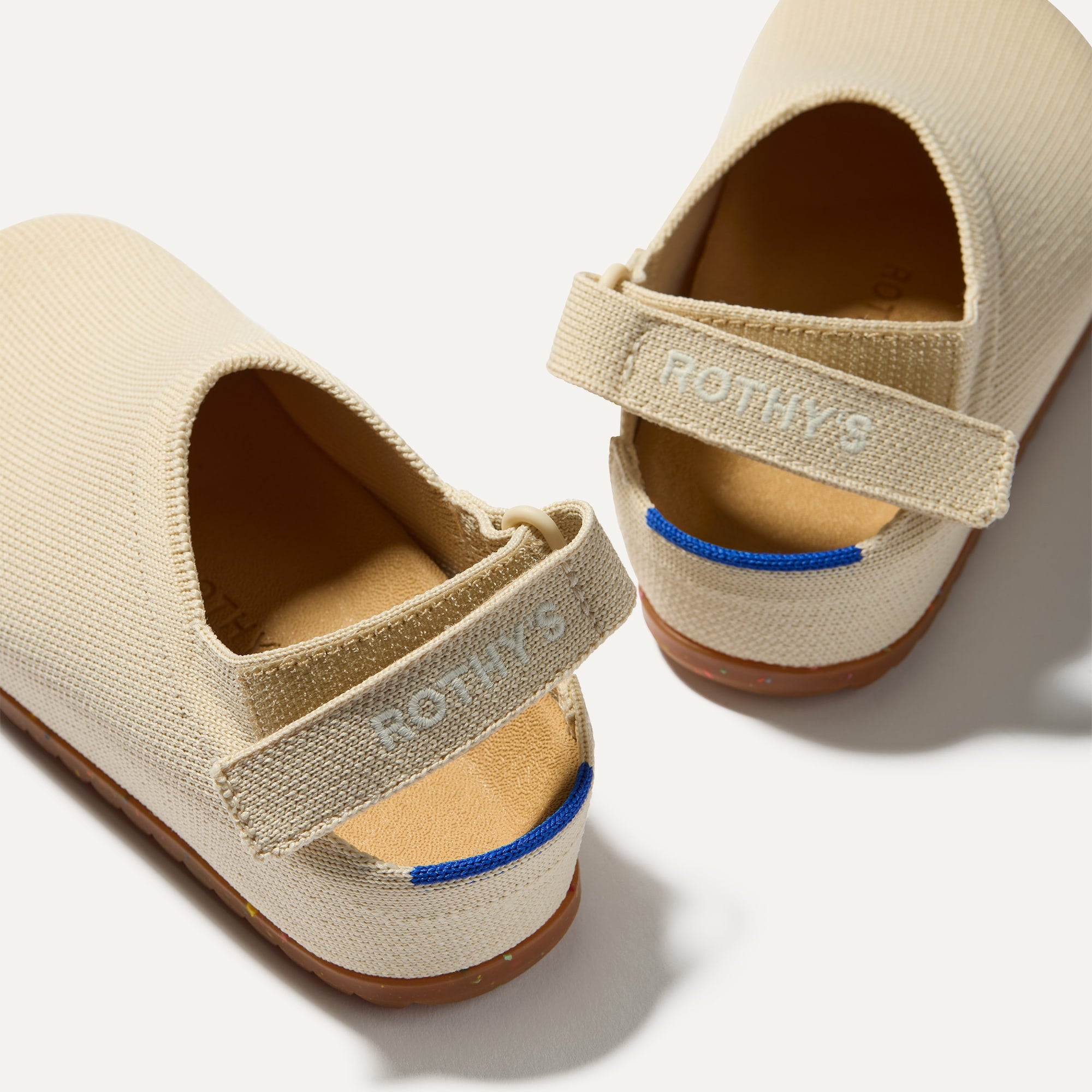 • Features a comfortable, adjustable hook & loop heelstrap in ivory to keep their little feet secure.