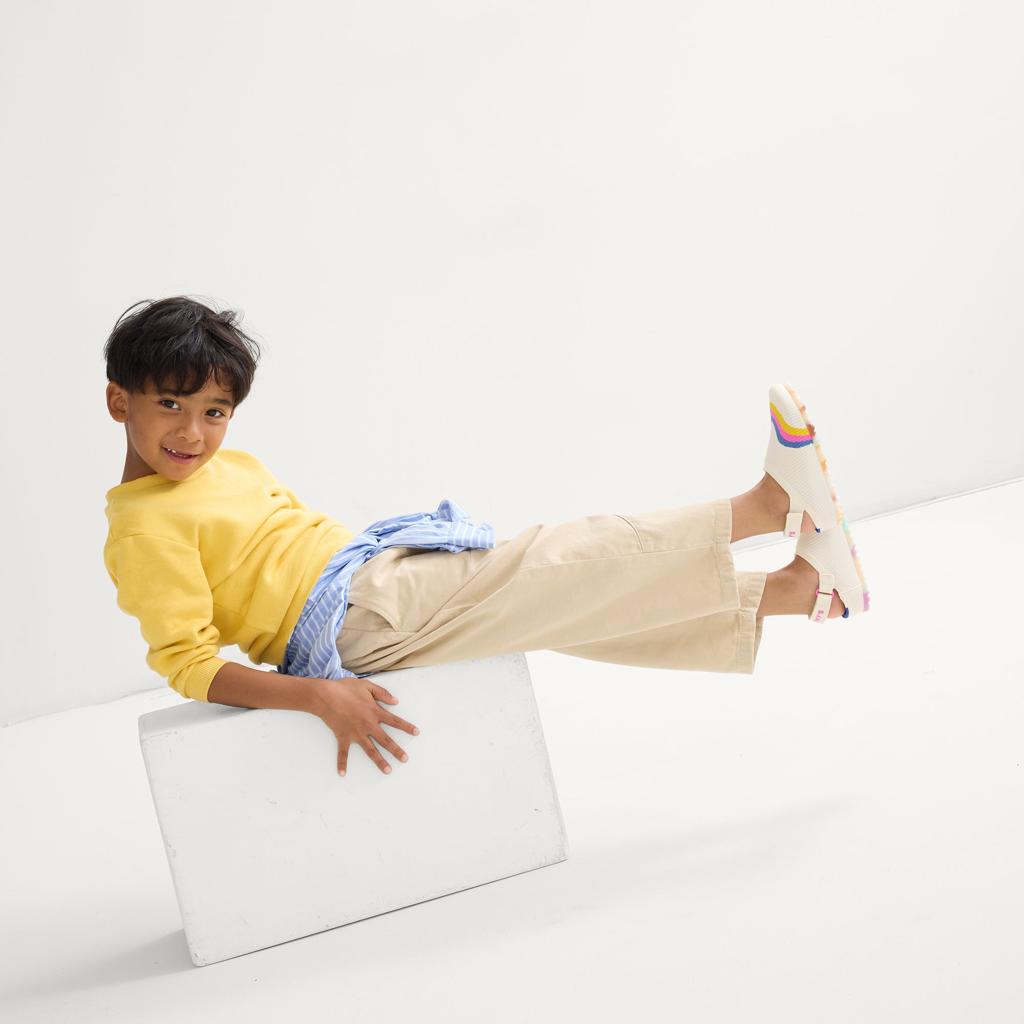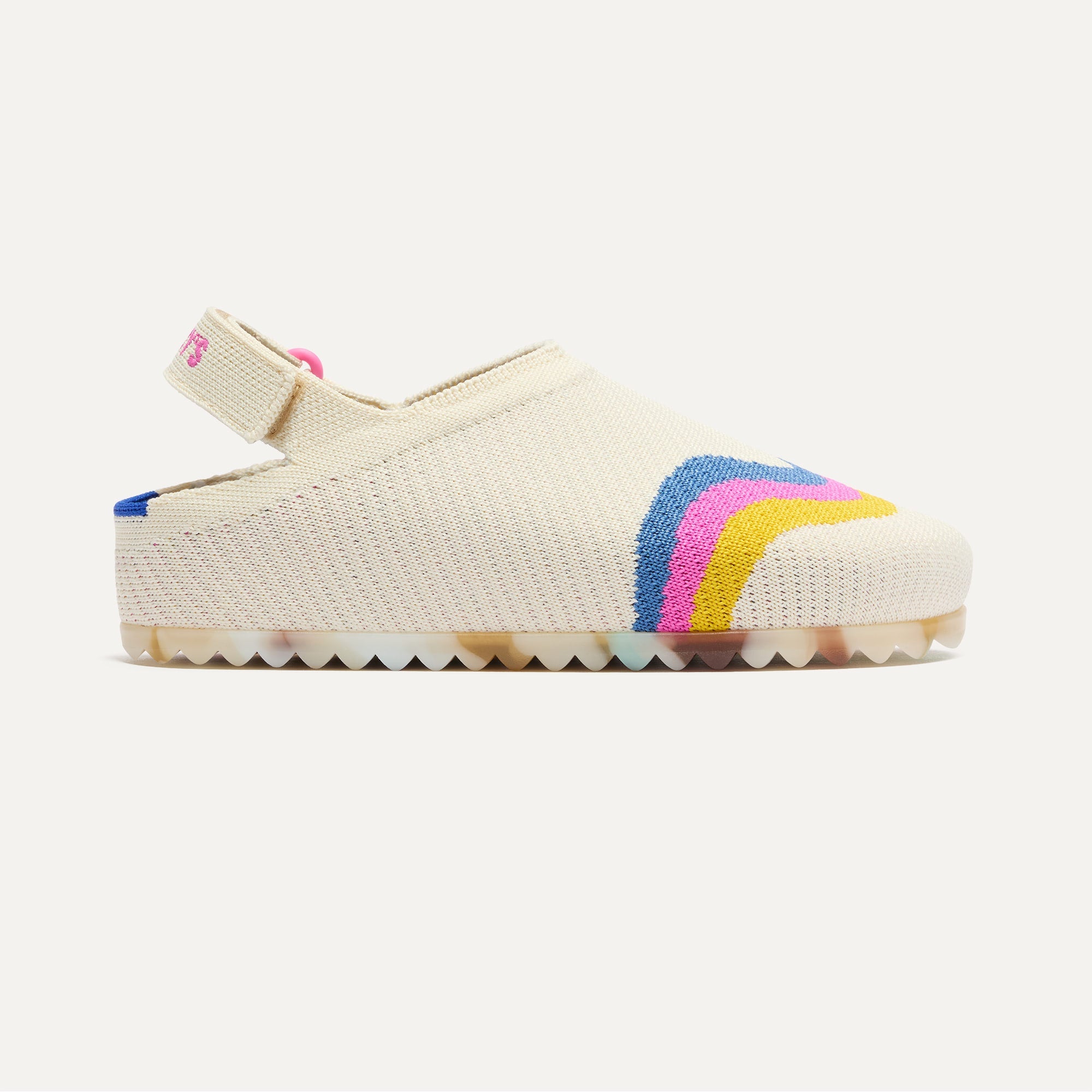 • Features a comfortable, adjustable hook & loop heelstrap in white to keep their little feet secure.