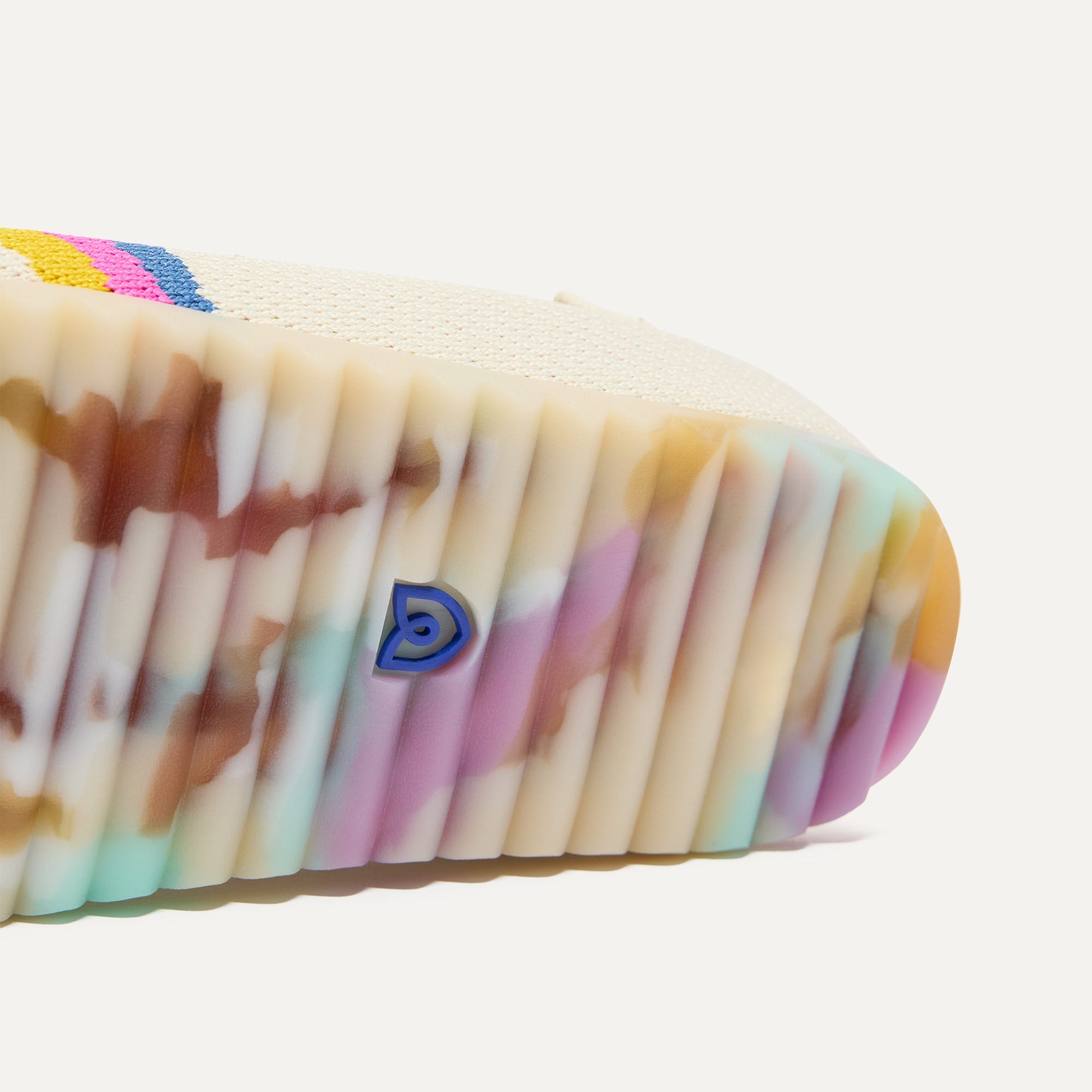 • Soft, flexible rounded upper in white with a colorful wave pattern.