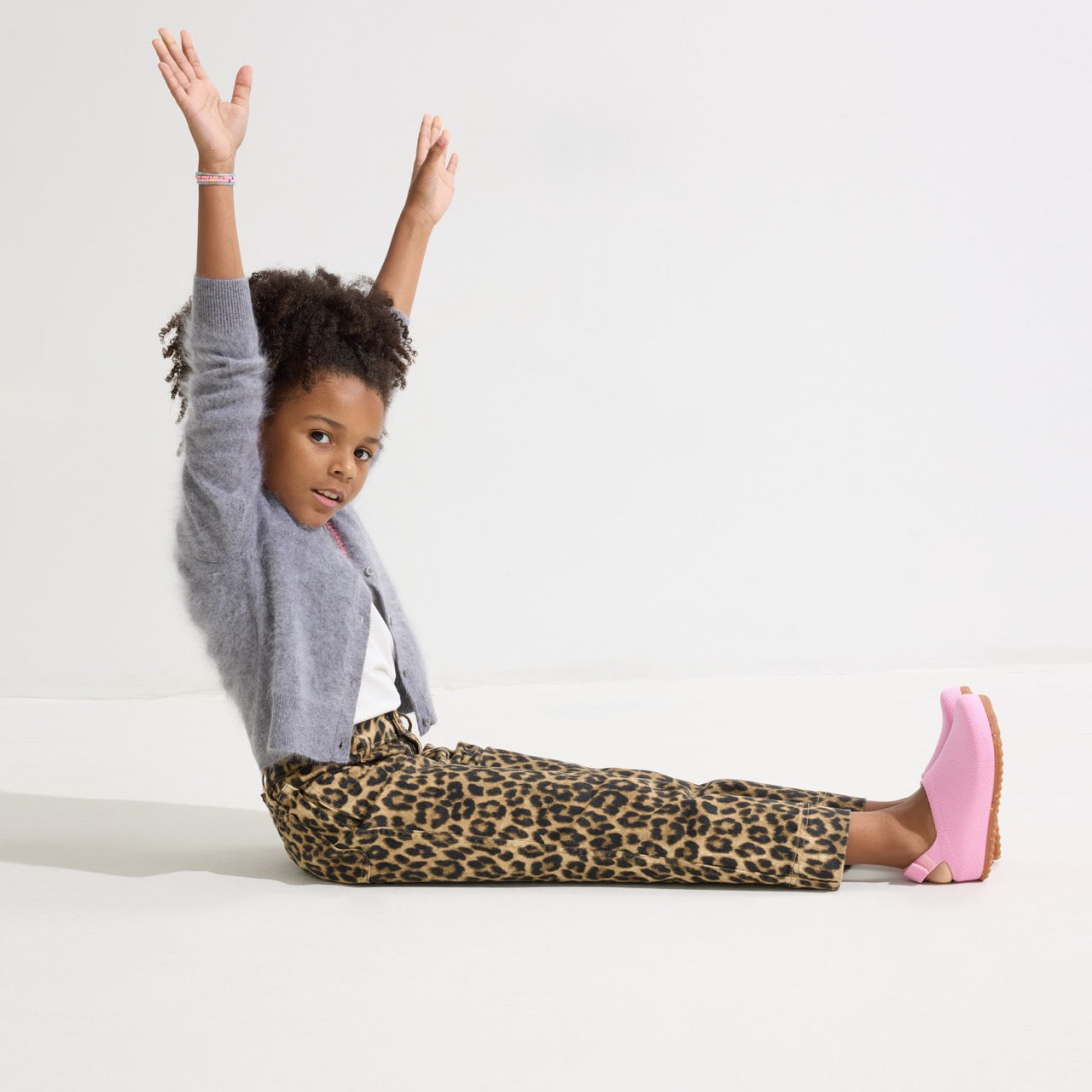 • Features a comfortable, adjustable hook & loop heelstrap in bright pink to keep their little feet secure.