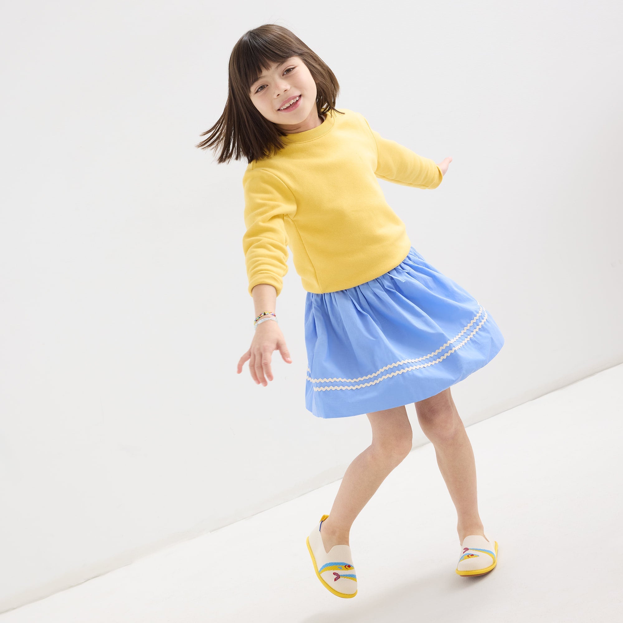 - Yellow heel tab makes slipping on (and off) a breeze for kids.