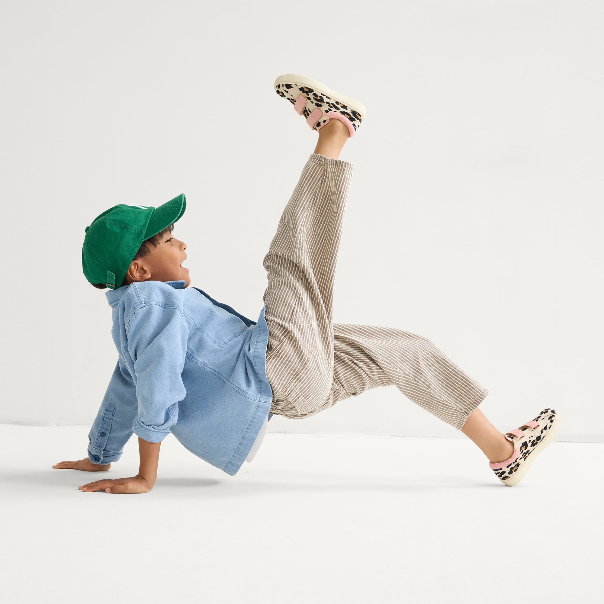 • Soft, flexible upper in ivory with a black and brown leopard print