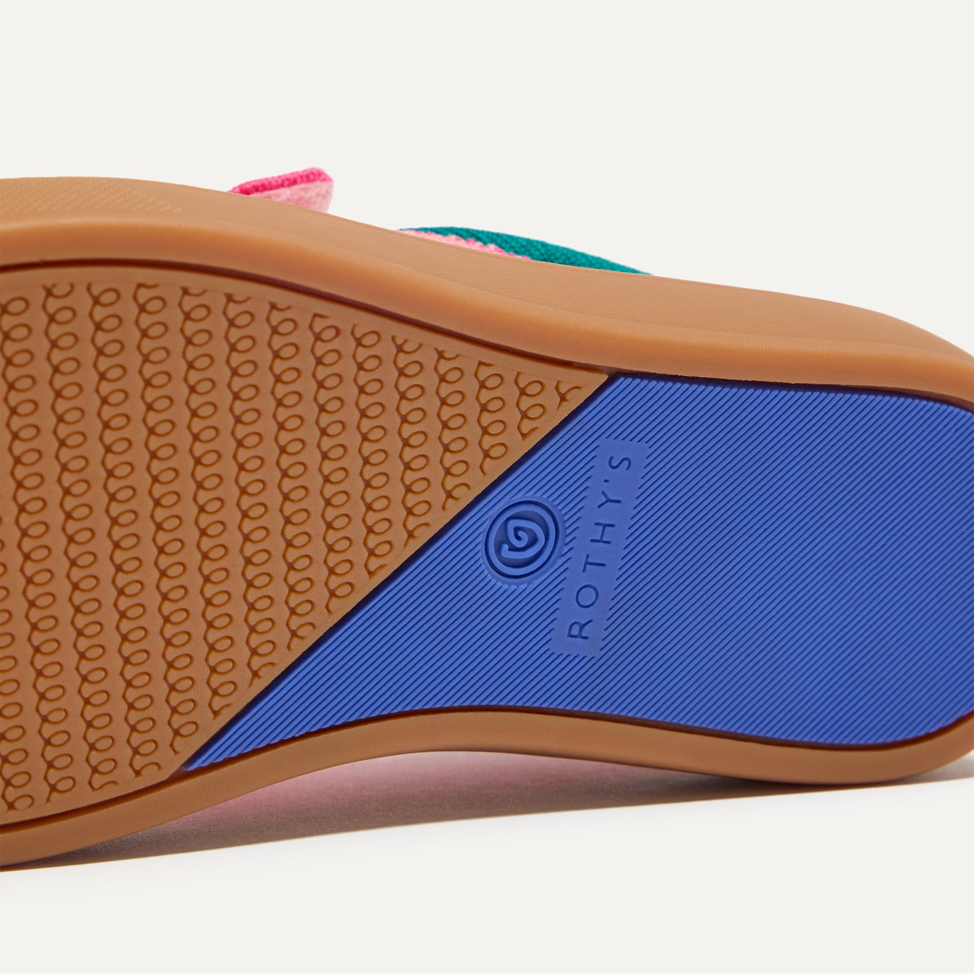 • Cushy insoles in pink and durable outsoles in tan.