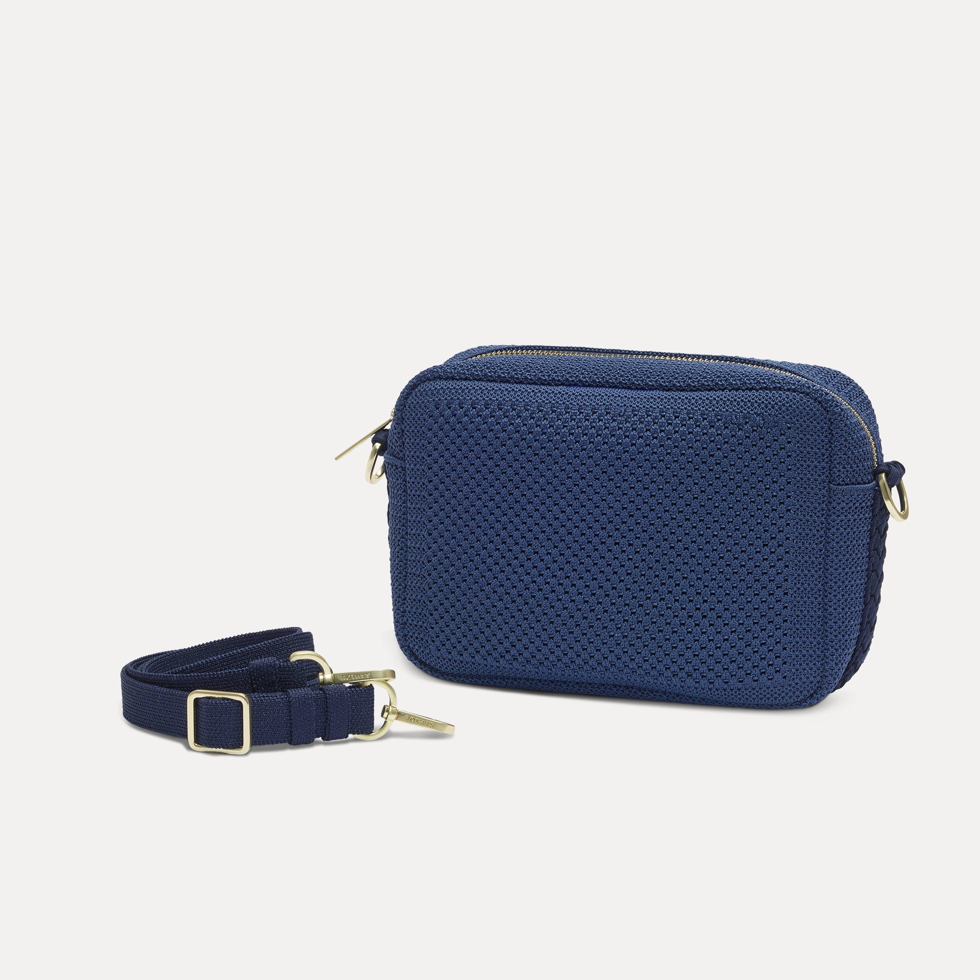• Adjustable, removable crossbody strap in navy. Wear it as a bag, use it as a clutch or customize your style with a .
