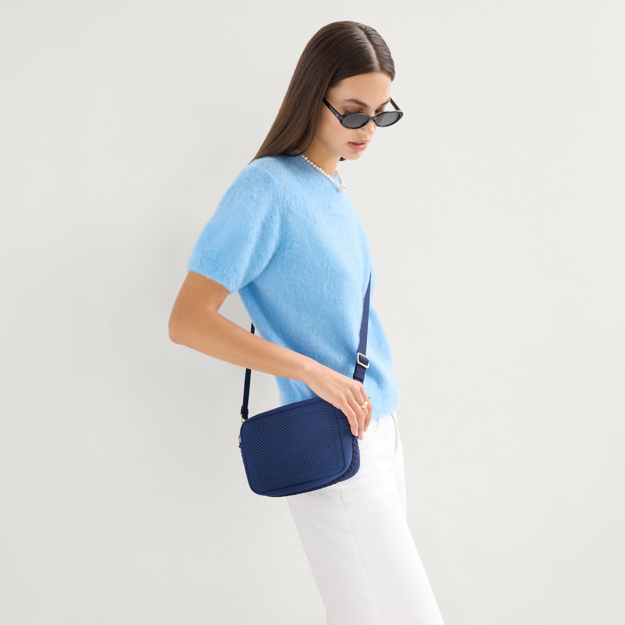 The Crossbody Camera Bag in Lagoon Open-Knit