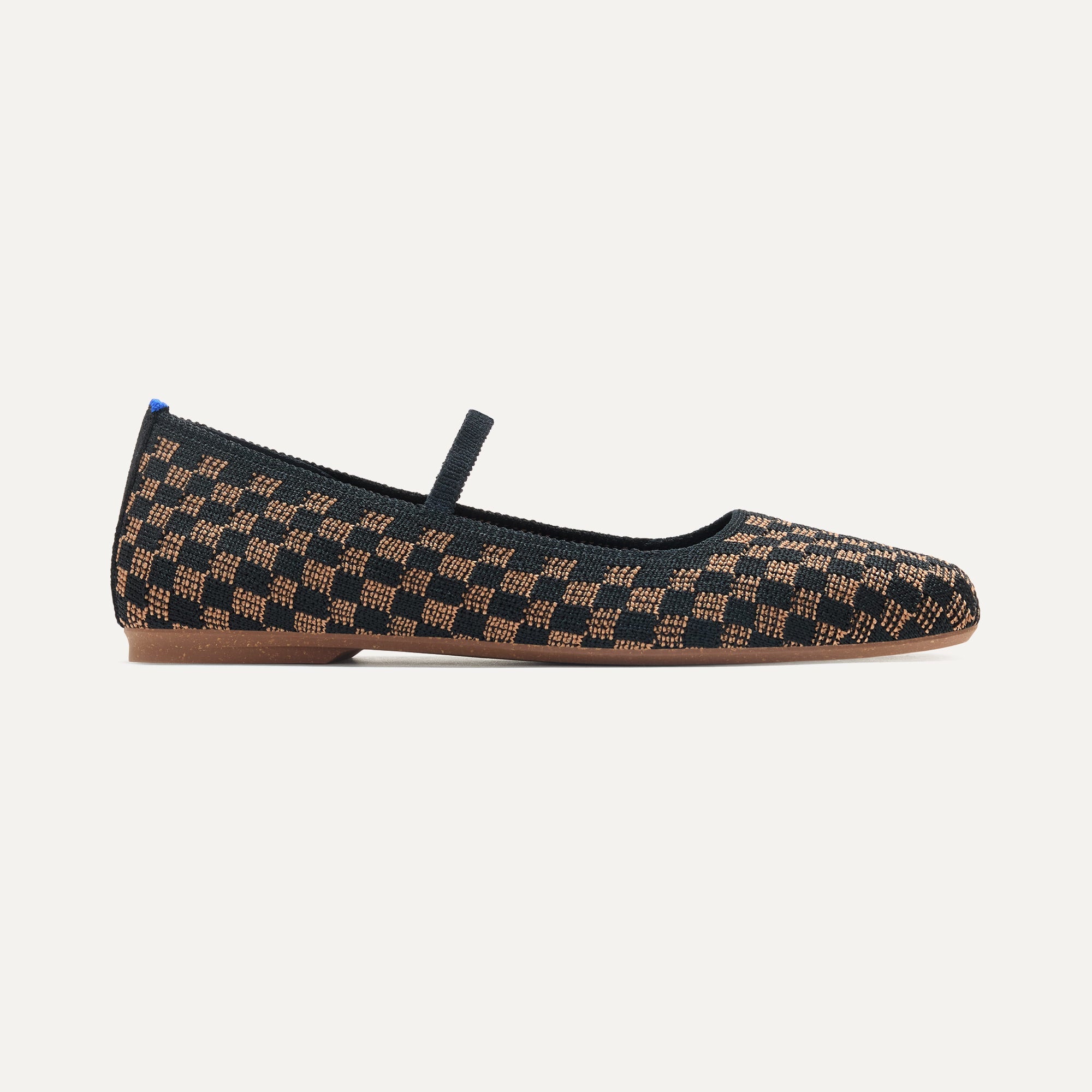 - Soft, flexible upper knit with a black and camel brown basketweave pattern.