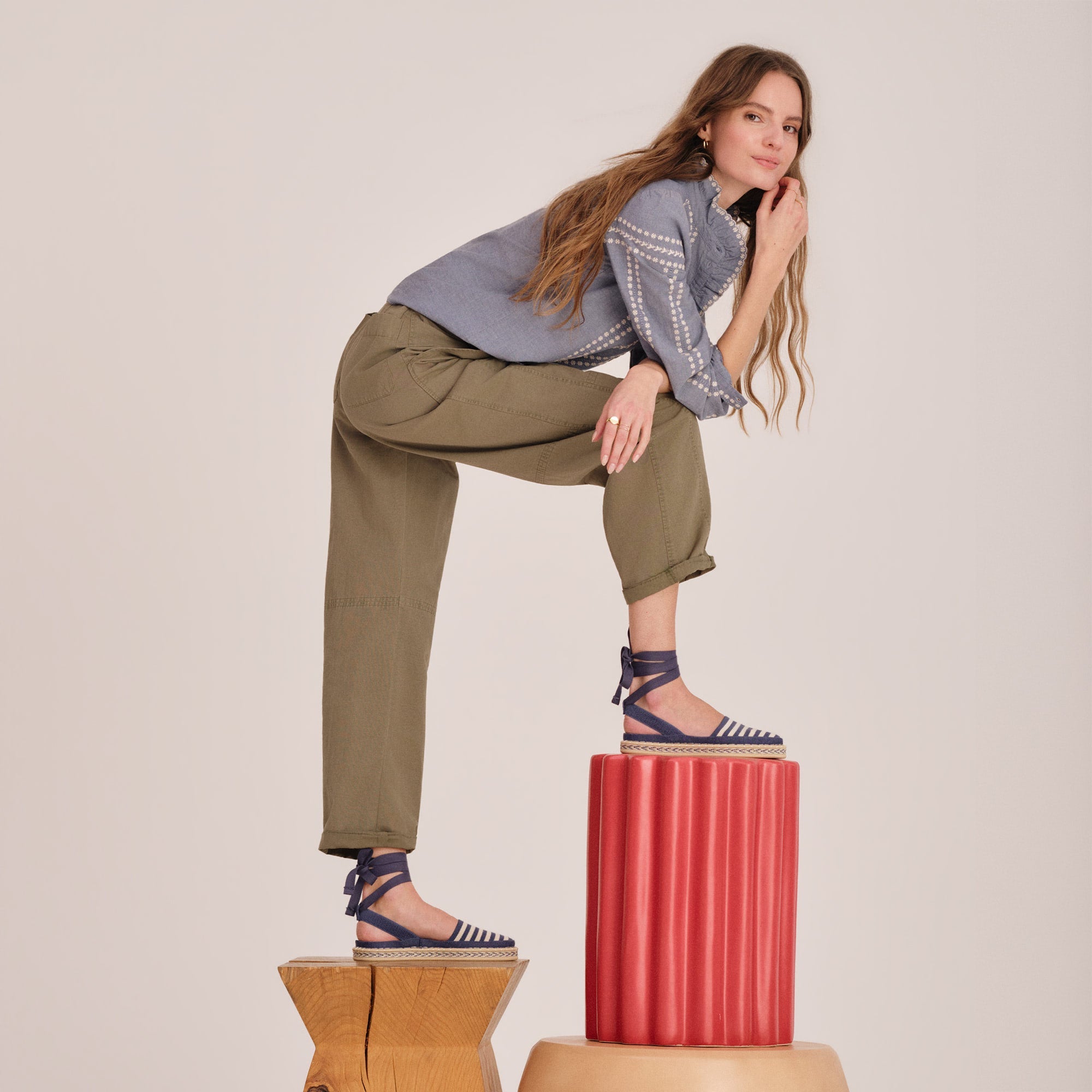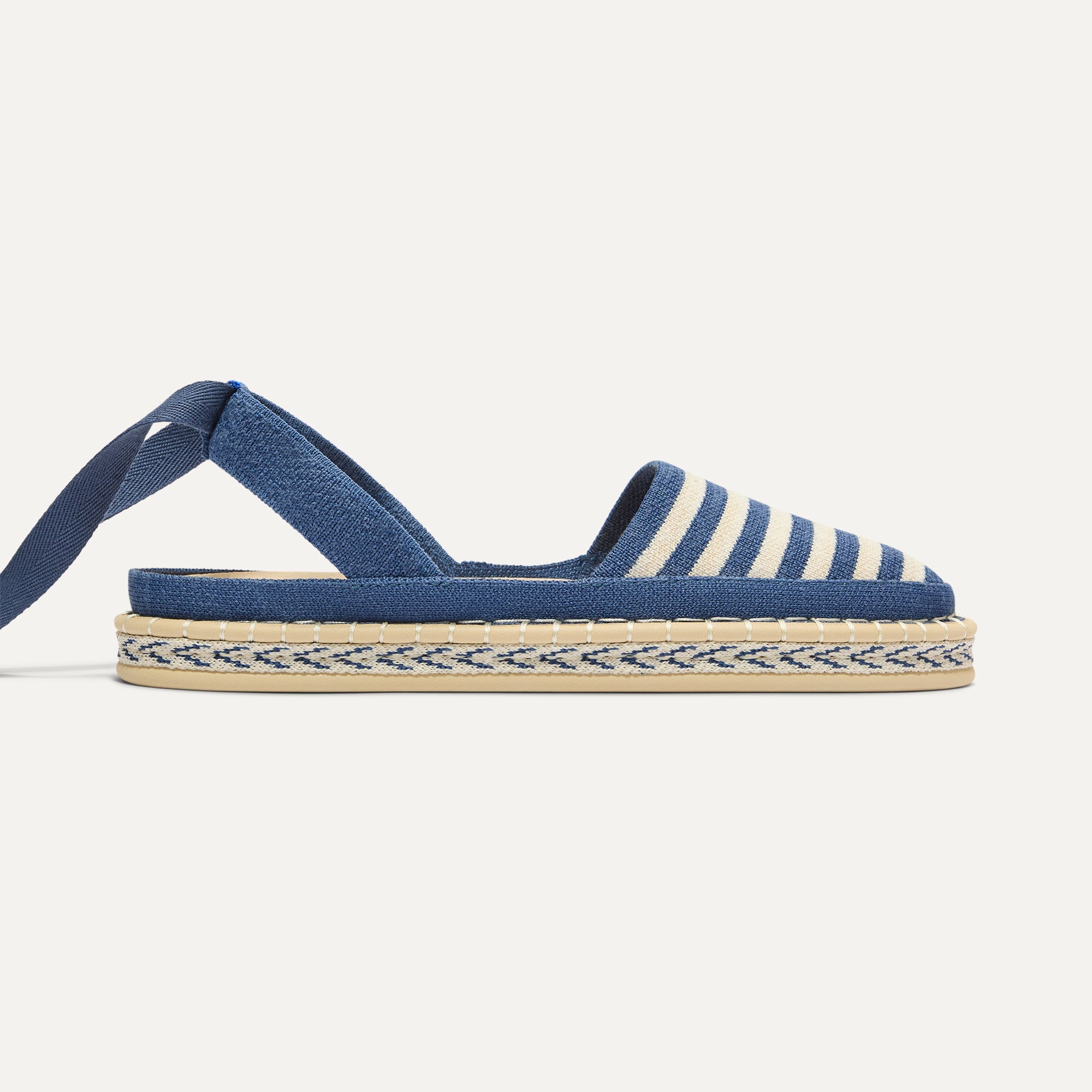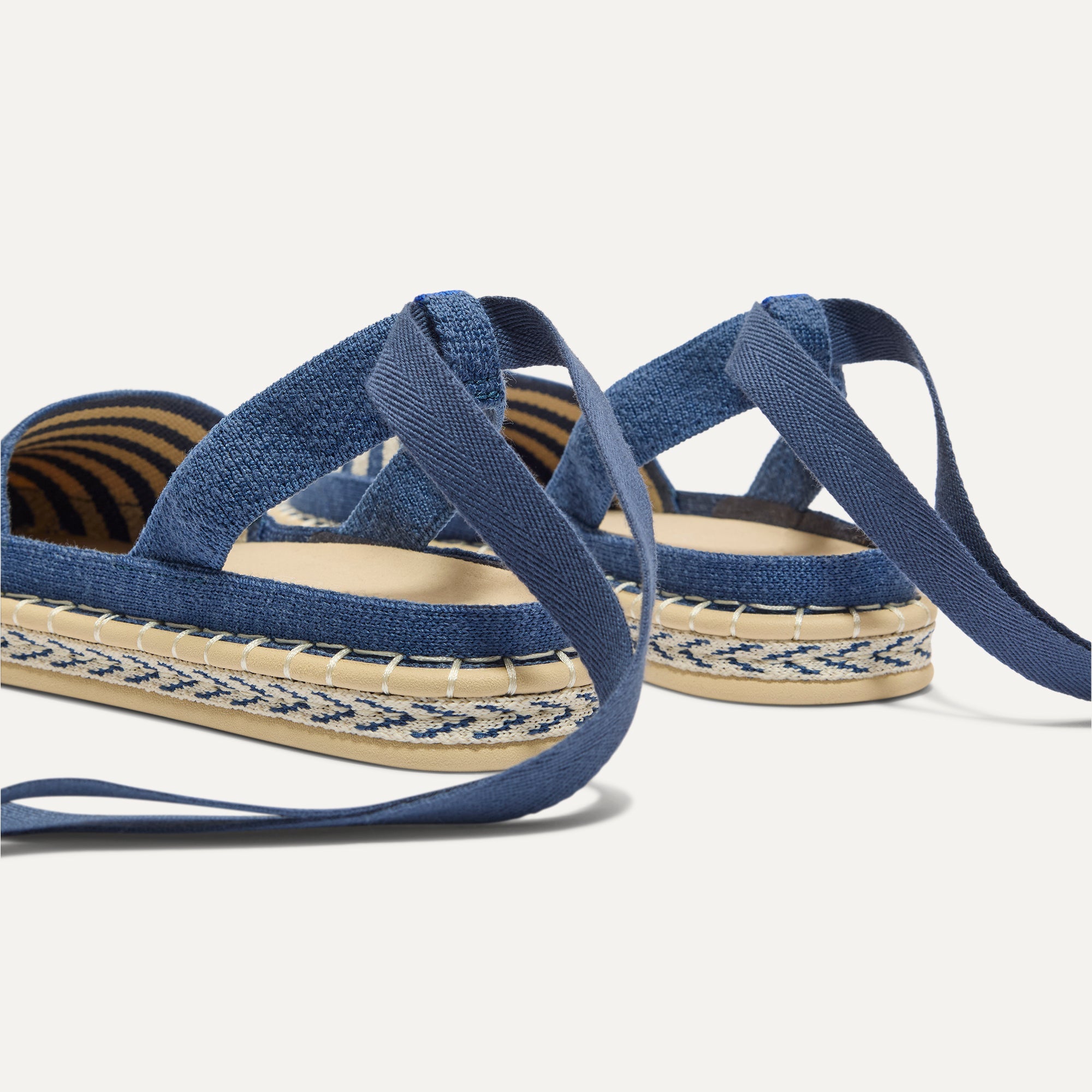 - Classic espadrille look with removable indigo tie-up ankle straps.