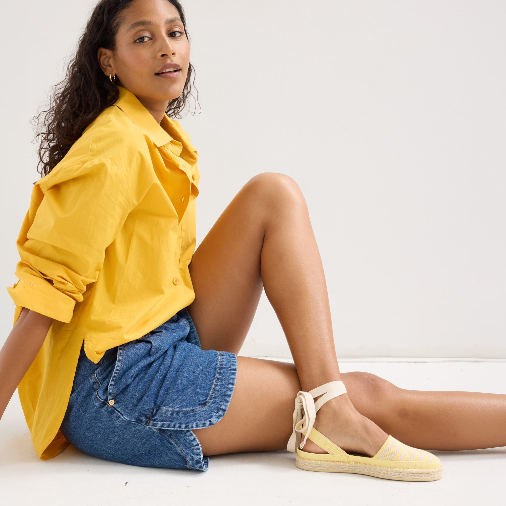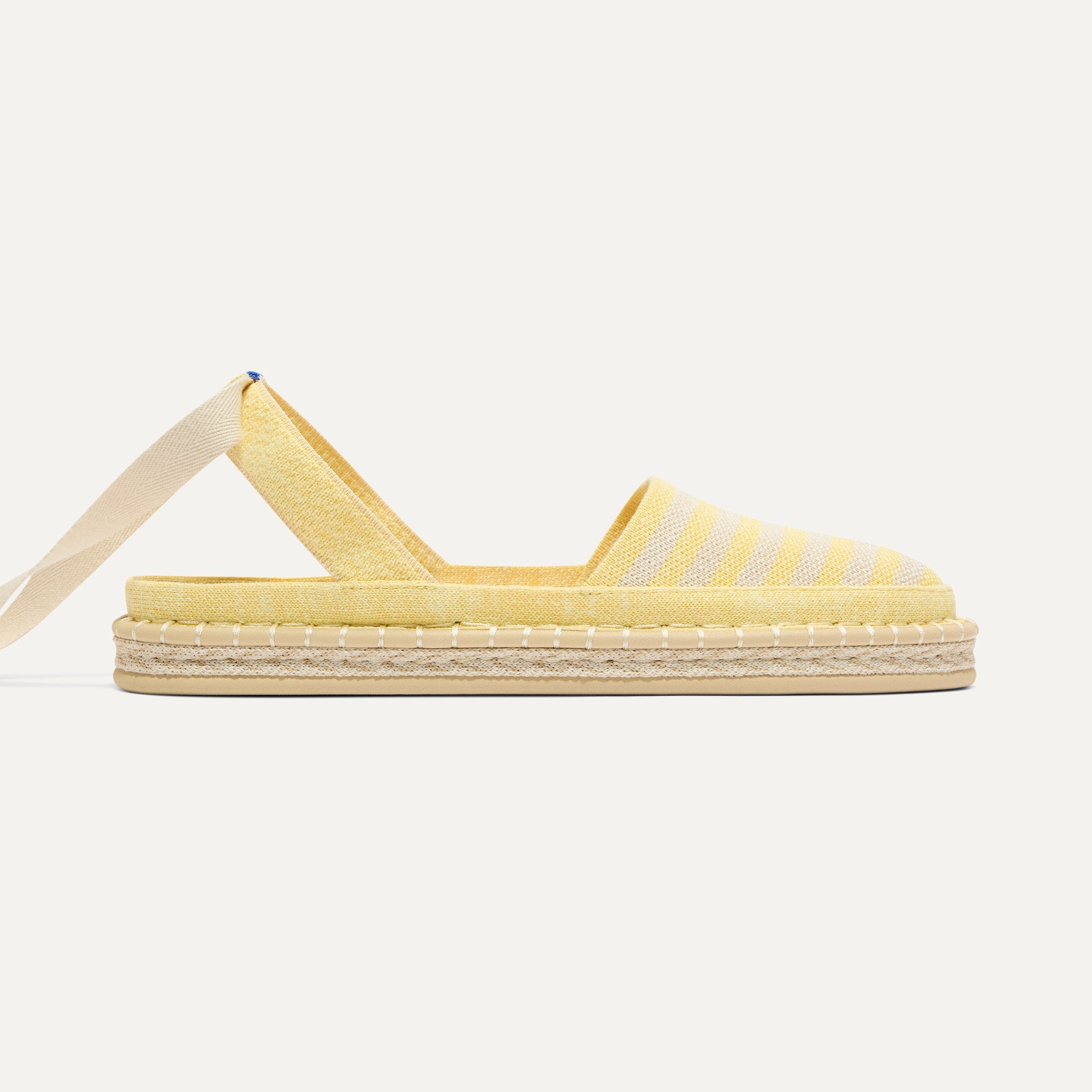 - Classic espadrille look with removable ivory tie-up ankle straps.