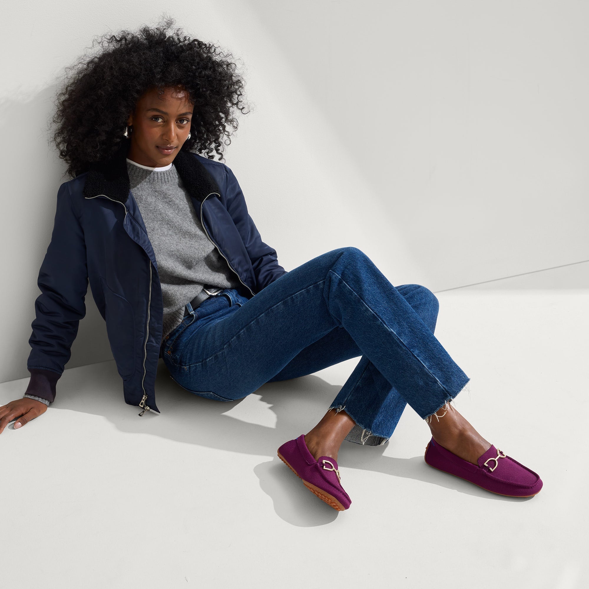 • Soft, flexible upper in deep purple with a gold hardware signet bit on the vamp.