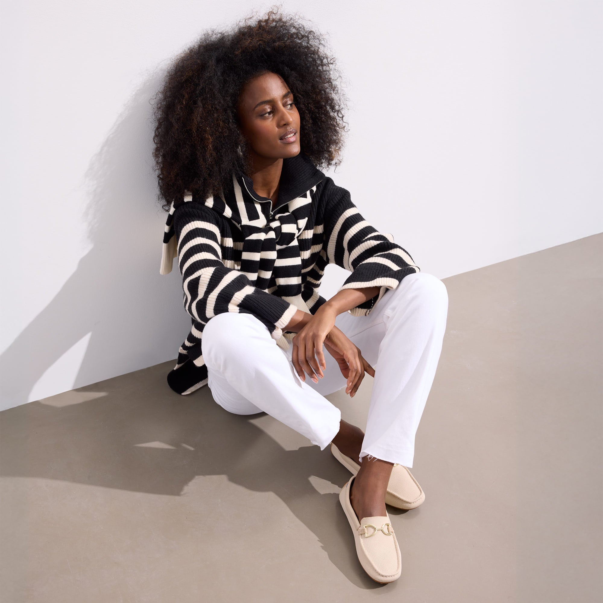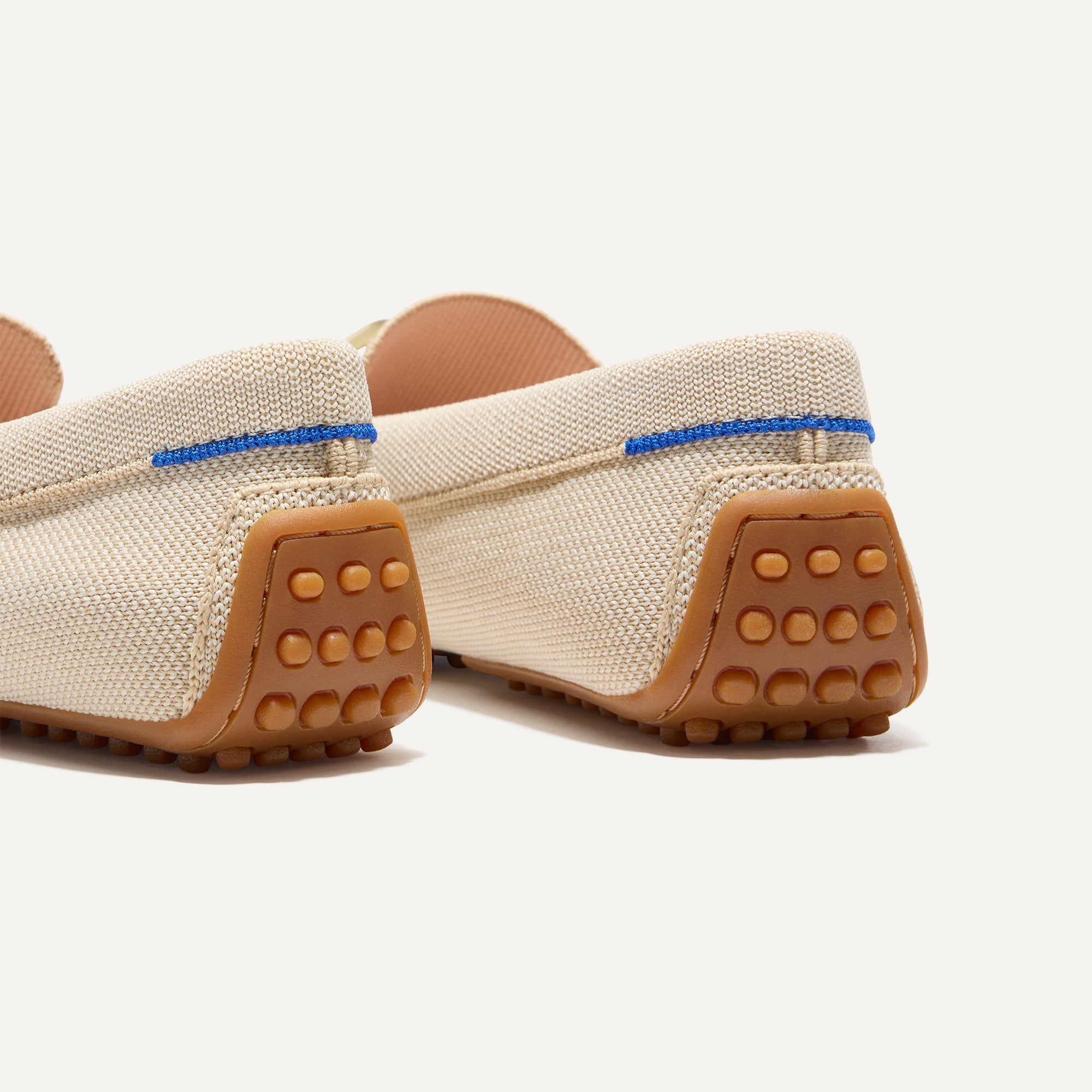 • Soft, flexible upper in light sesame with a gold hardware signet bit on the vamp.