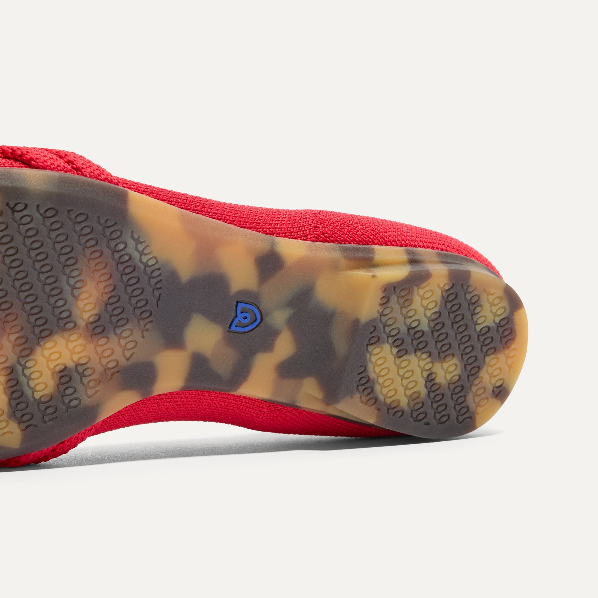 - Knit upper in bright red with a smooth, rounded toe box.